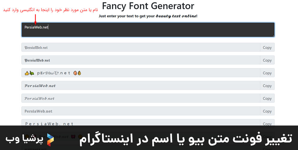 - روی لینک مقابل کلیک کنید: Fancy Text Generator تا وارد سایت آن شوید.